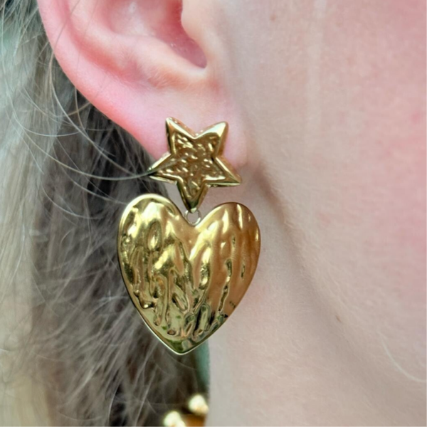 STAR HEART oorbel- gold