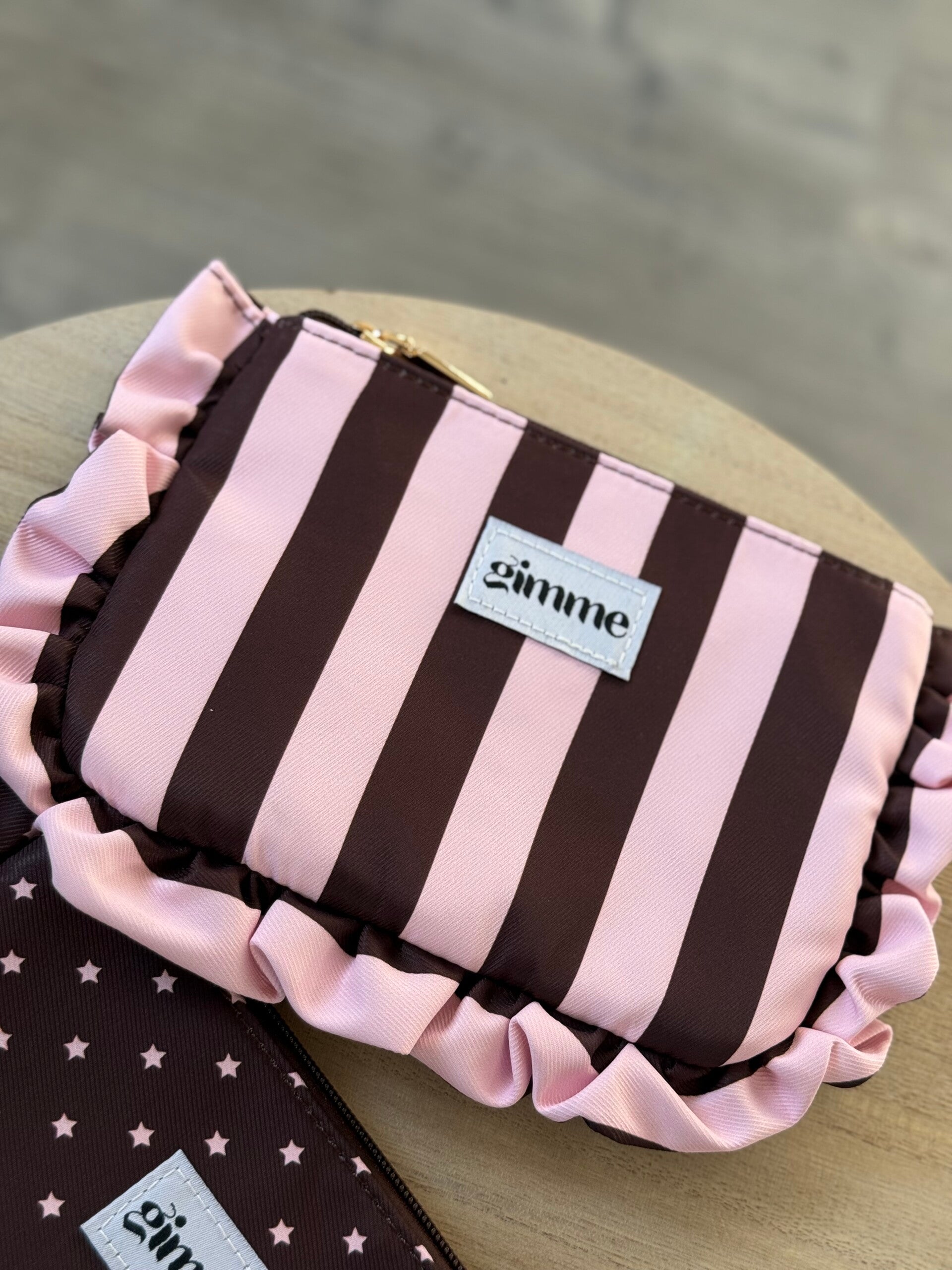 MAKE-UP BAG STRIPES - bordeaux/pink