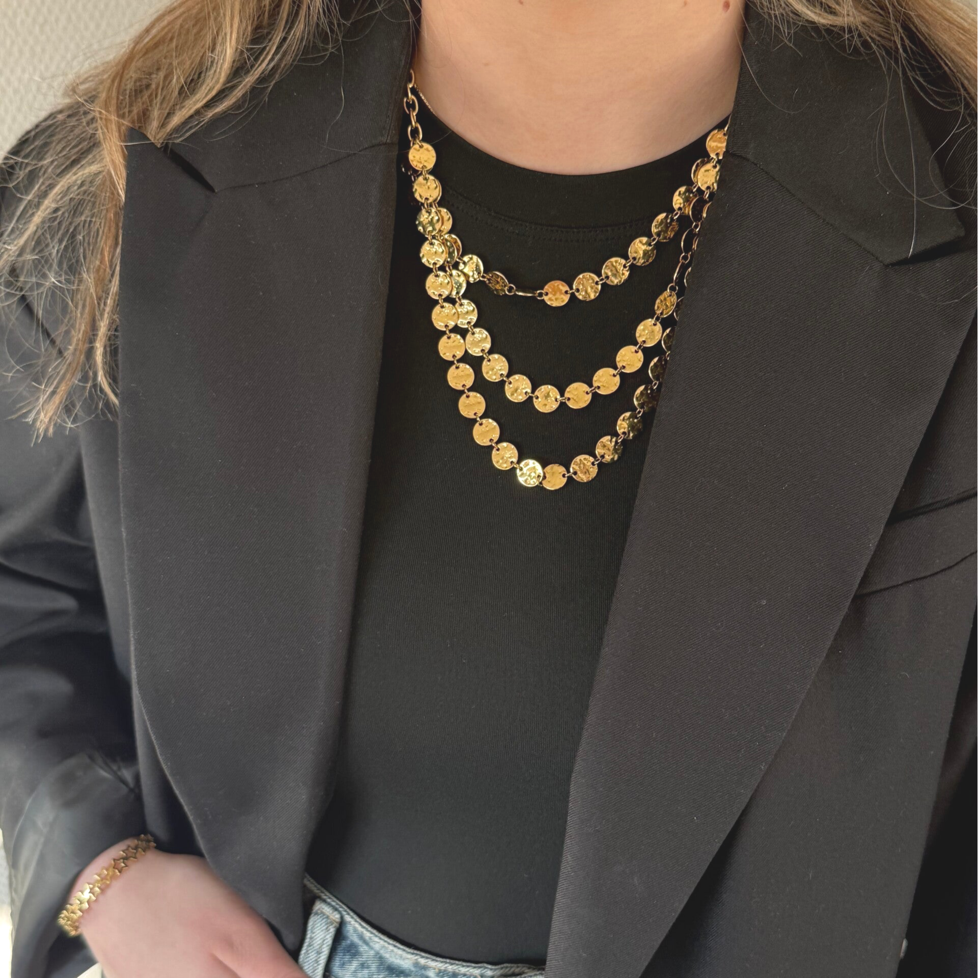 TRIPLE SPIKEY ketting- gold